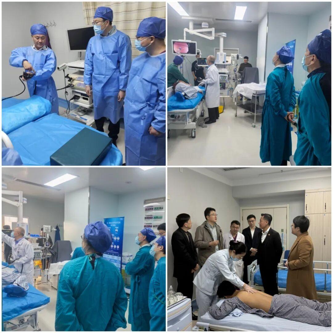 廖永昌教授实地参观了消化内一科、消化内二科病房及胃镜室,对于科室诊疗能力、软硬件条件、人员专业素养给与高度评价,同时对中医特色技术在消化系统病人治疗康复中的作用疗效表示高度认可。