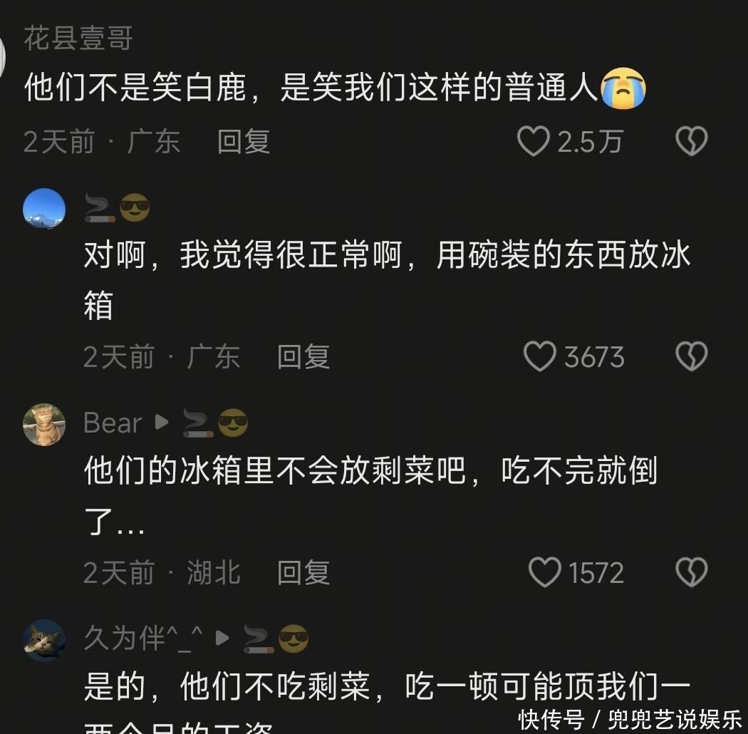 在《跑男》的一期节目中,白鹿一句理所当然的“冰箱里有碗”,引来了郑恺等人毫不留情的嘲笑。